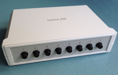 The newest and smallest product of the varioport-family, but indeed comparable to its bigger brothers in performance and quality. With its dimensions of 65mm x 43mm and a weight of only 50g it is particularly well suited for use in environments where it comes to authenticity and where extensive technical equipment would constitute a disturbance of the experiment, for example in supermarkets or at fairs and exhibitions. Also the field of study of sports activities this unit is an ideal choice.